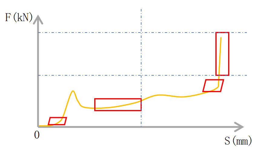 使用位置模式,將電機轉(zhuǎn)子軸垂直壓入轉(zhuǎn)子鐵芯及蓋板,經(jīng)歷接觸起力-壓裝平穩(wěn)-壓裝末端-壓裝極限四個階段,如下圖。