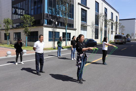 參觀及交流會(huì)議結(jié)束后,我們在休息室稍作休息,休息了十分鐘后,隨機(jī)分成了兩隊(duì),開始緊張刺激的“對(duì)戰(zhàn)”——跳繩和拔河。在這一過程。大家見證了什么叫“友誼的小船說翻就翻”!
