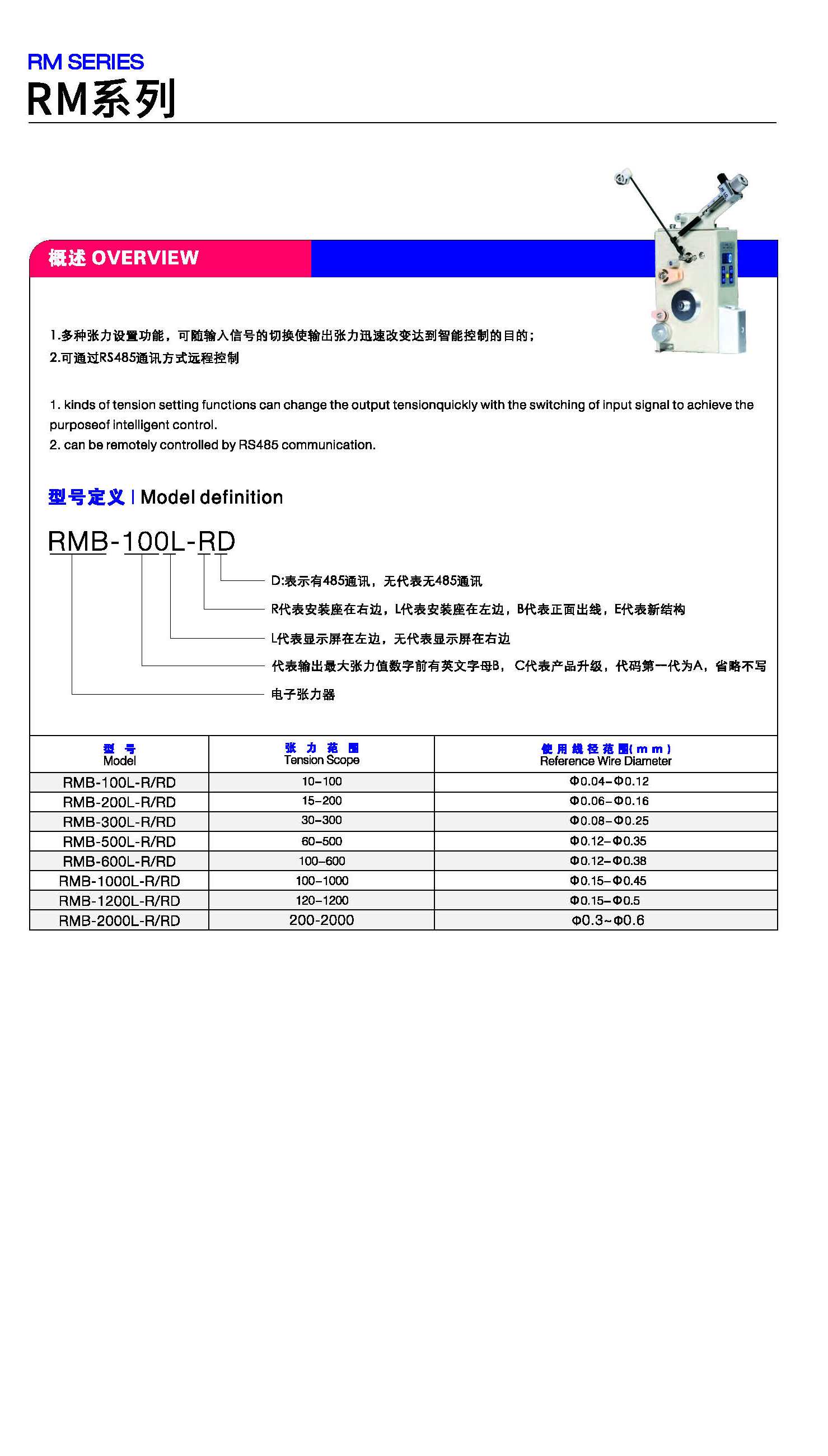 產品名稱:RMB系列電子張力器